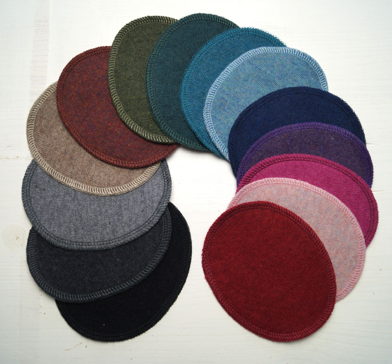 Die Flicken aus bunten Wolle-Seide-Stoffen sind die einfachste Lösung, um dünne Knie an deiner Lieblingshose oder Ellenbogen an Pullis zu verstärken oder Löcher und Flecken einfach zu "überdecken". Sie sind oval und bestehen aus doppellagig vernähter Wolle-Seide (70% Wolle, 30% Seide) und sind rundherum gekettelt, wodurch sie nicht ausfransen oder aufribbeln.